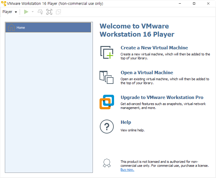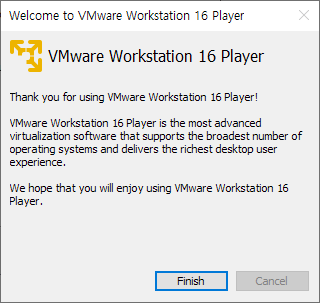 이제 VMware Workstation 16 Player 설치가 완료 되었습니다