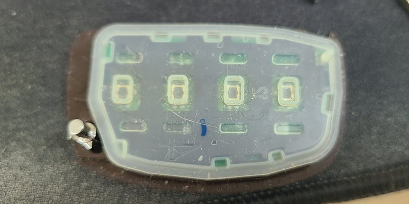버튼의 고무 커버와 녹색 기판은 고정되어 있지않고 살짝 얹혀있으니 반대로 털면 떨어집니다