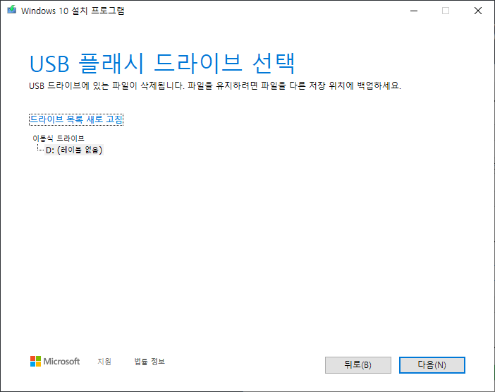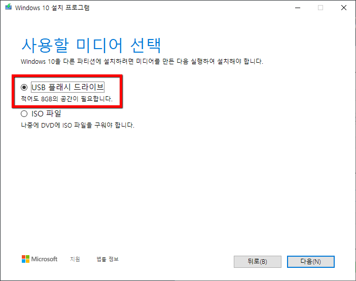 [USB 플래시 드라이브]를 선택하고 [다음] 이어서 [다음]만 눌러도 됩니다