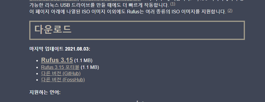2. Rufus 다운로드