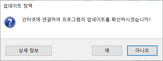 처음 실행하면 업데이트 확인한다는 창이 뜨는데 이미 최신버전이므로 아니오를 누릅니다