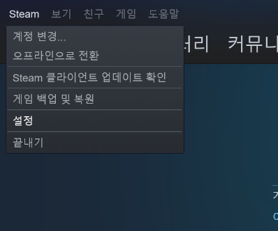 [스팀] - [설정]을 클릭해서 설정창을 띄웁니다
