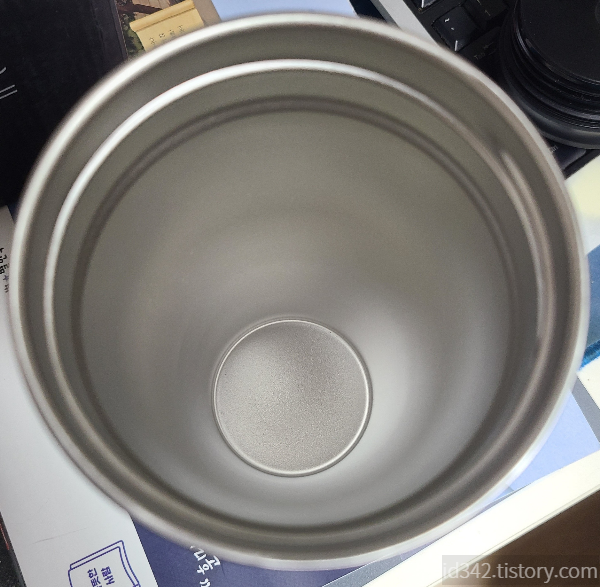 외부 바닥에는 티코스터 역할을 하는 고무가 있어 내려놓을 때 특유의 스텐 소리가 나지 않습니다