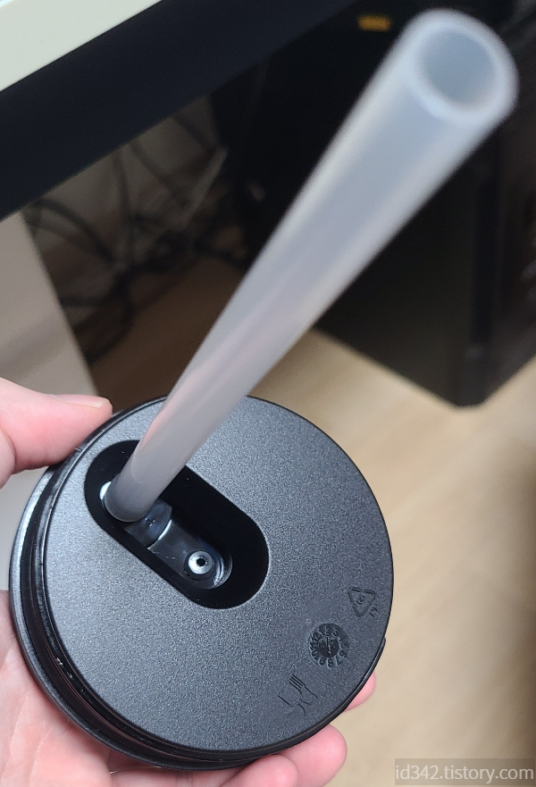 - 빨대 뚜껑은 결합 시 음용구 위치가 로고에 딱 맞지만, 플립 뚜껑은 맞지 않음