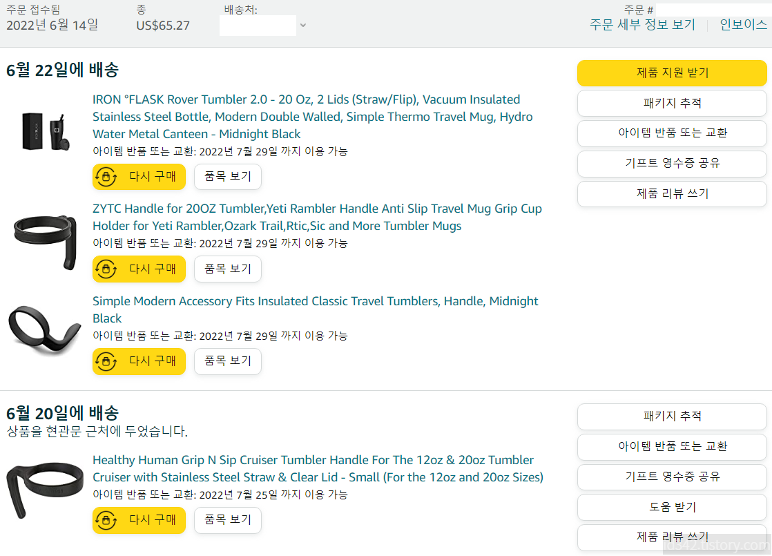 22년 6월 14일에 아마존 공홈에서 주문해서 20일과 22일에 도착하여 배송기간은 약 일주일 정도 걸렸습니다