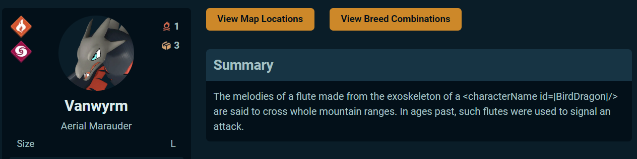 Map Genie에 안나오는 버드래곤을 찾아보면 영문명은 Vanwyrm을 검색하고 [View Map Locations]를 클릭하면 위치가 표시됩니다