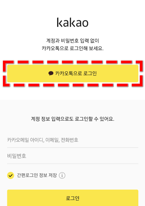 그 다음 [카카오톡으로 로그인]을 누르면 설치와 로그인이 끝납니다