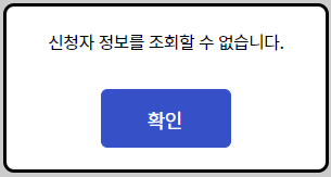 아래처럼 신청자 정보를 조회할 수 없습니다 라는 메시지가 떠서 더 진행하지 못했습니다